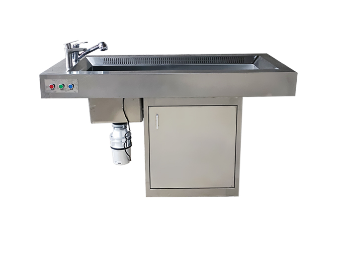 台面有水幕装置可自动:冲洗尸体污物; 水池下面有粉碎机可粉碎解剖后的碎组织、小骨头通过排水口排出;解剖台边 有防水电源插座,便于解剖工具使用;电源:220V 50HZ;